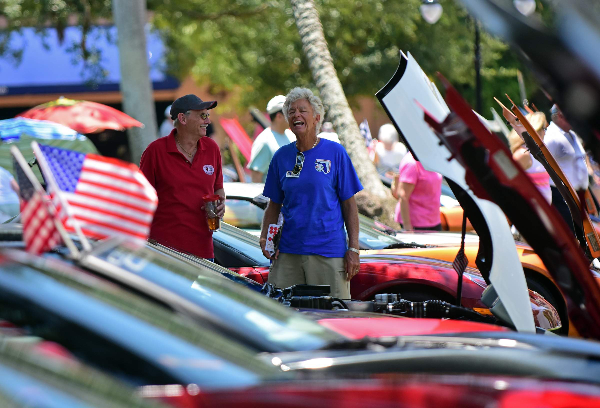 Lakeland Corvette Club member Tony Murray, left, chats with Suncoast Corvette Club show judge Milt Johnson beside Murray's 1994 Corvette at the event.