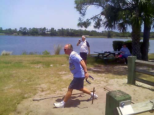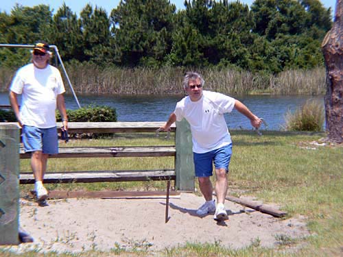 Last throw in this year's finale, and the score was tied 20-20! Can you believe this finish? Roland & Mike win, while Mike & Mark walk away proud to have lead by as much as 10 points, before squandering the game. Bummer.