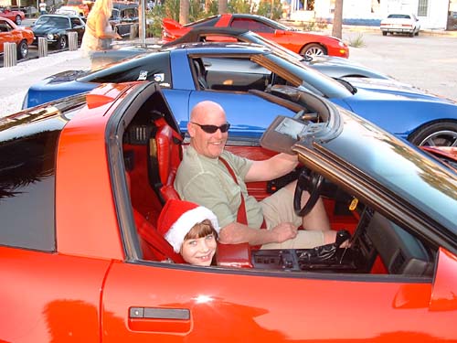 Gabby (one of Santa's elves) and Joe, in their red sleigh!