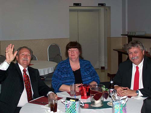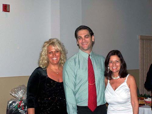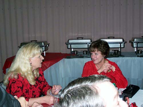 Christine & Carol chat, as Mike loads up on the hors d'oeuvres.