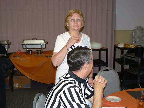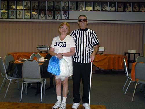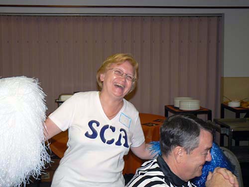 Kathy cheers on the SCA! The club's favorite costume!
