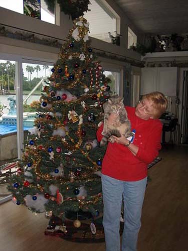 Kathy and an adorable friend. Beautiful tree, June & Jerry!