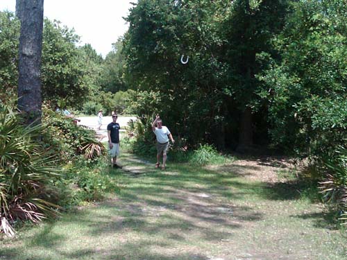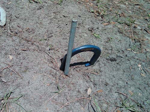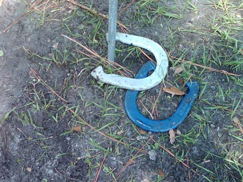 Ernie has pretty good form, for a guy who hadn't thrown a horseshoe in 30 years.
