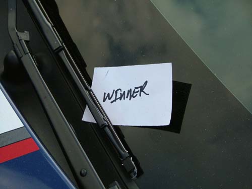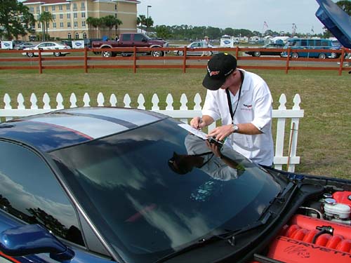 Johnny O, seen here filling out the form while using Alan's windshield to write on.