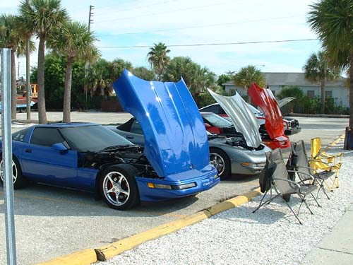 Three SCA 'Vettes and one AMX make the caravan south to Gators' Show.