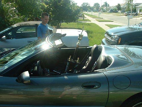 M.G. tried to escape the camera ... ... he won a commemorative Corvette key chain.