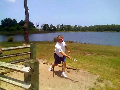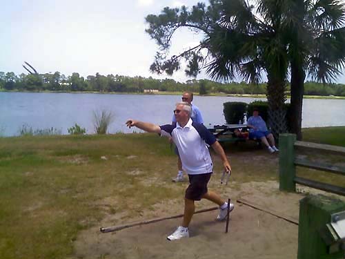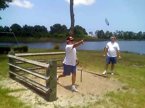 Last throw in this year's finale, and the score was tied 20-20! Can you believe this finish? Roland & Mike win, while Mike & Mark walk away proud to have lead by as much as 10 points, before squandering the game. Bummer.