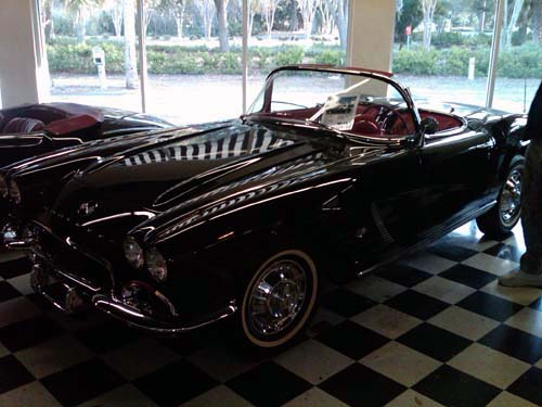 Liz gets in the very first automobile and the oldest corvette known to man!