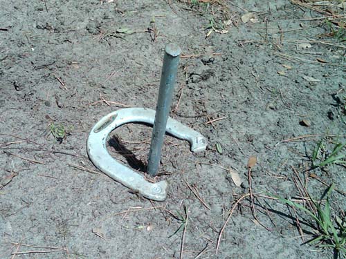 Ernie has pretty good form, for a guy who hadn't thrown a horseshoe in 30 years.