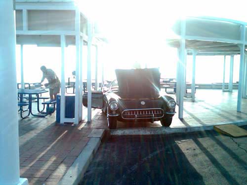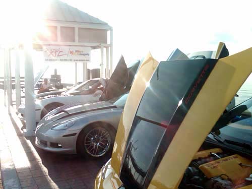 Cruising to beat the band ... or in this case, the 'Vettes. We passed this one up on the way to get set up for the big day. Yes, even in our 4 cyl. Malibu we flew by this sweet ride!
