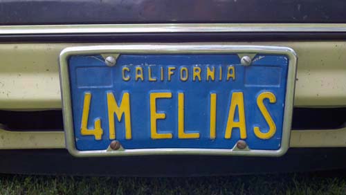 4M ELIAS. Amazing, this is exactly how he spells his name. Unusual as it may be, the plate is from California and was part of a collection of plates for sale at the trophy table. What are the odds?!