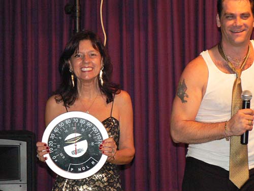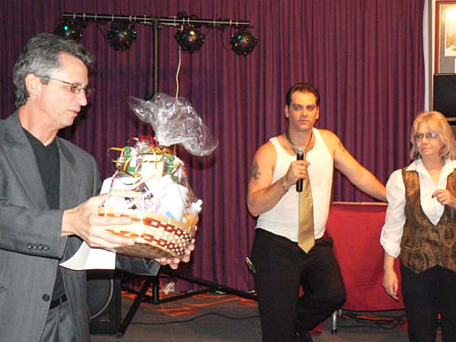 Charlie (Ernie accepts) & Laura win the Flash Distributors' basket. STUFFED with AWESOME car detail kit & products.